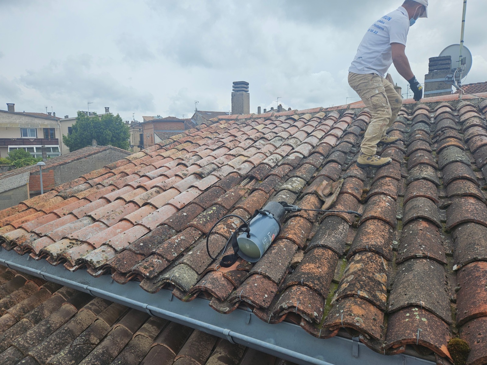 L'équipe Louis & Fils intervient sur vos tuiles noires pour démousser les éventuelles mousses et algues puis nettoyer et finalement faire un traitement hydrofuge, essentiel pour protéger votre toiture à Montastruc-la-Conseillère.