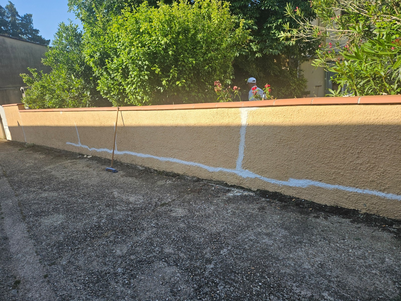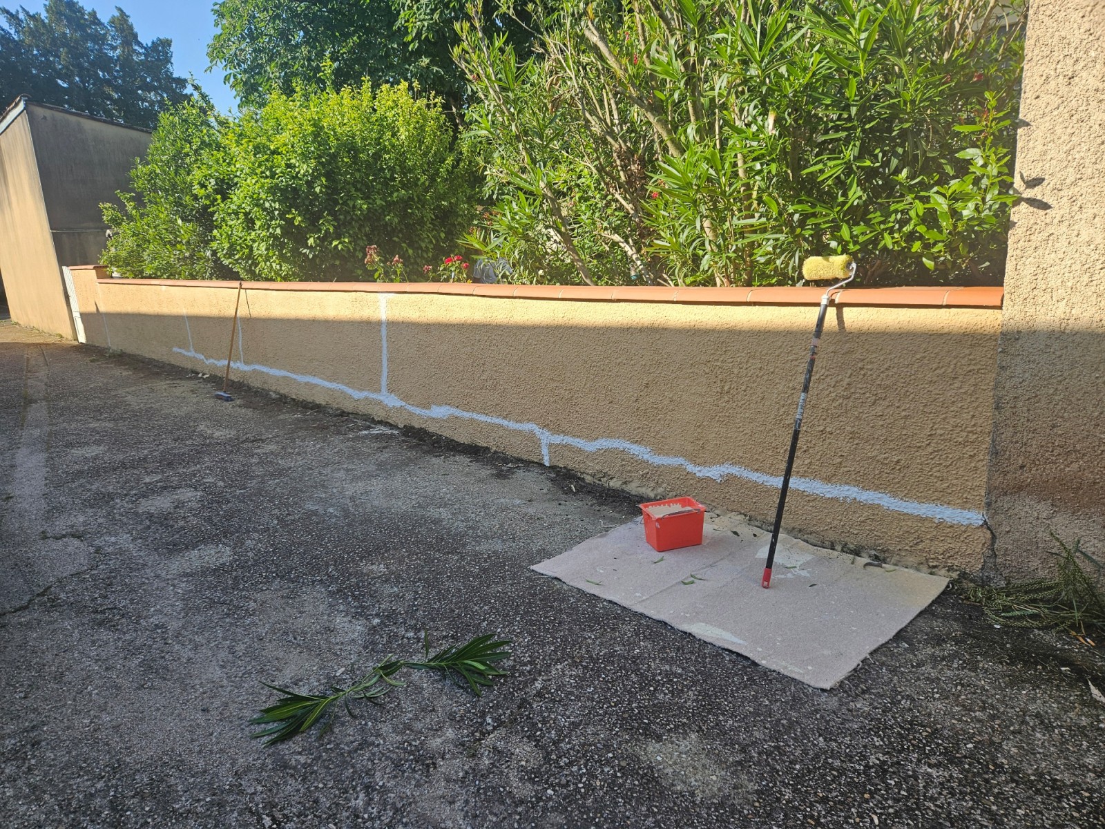 Ensuite, on s'est attelé à la réparation de la murette en rebouchant les fissures nécessaires. Et nous avons terminé par une mise en peinture de plusieurs couches bien sûr pour que cela tienne le plus longtemps possible.